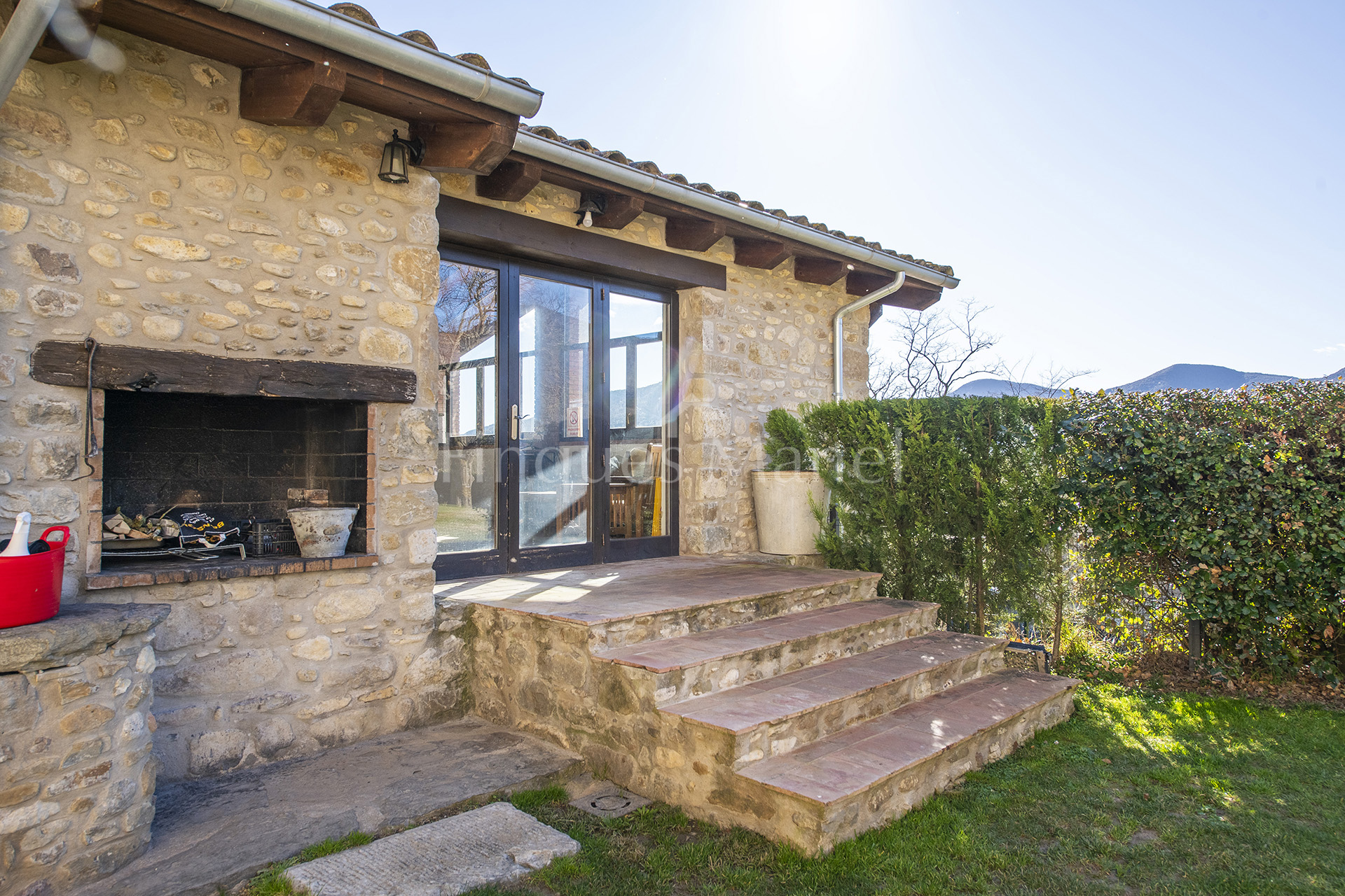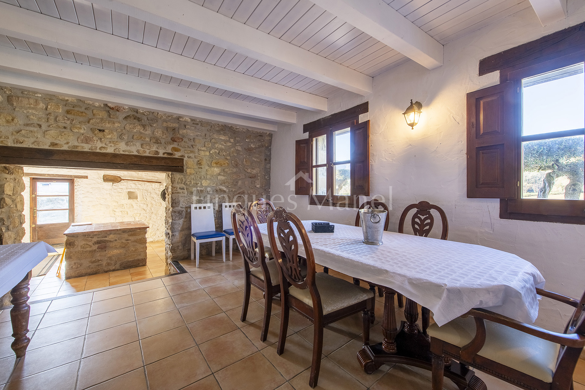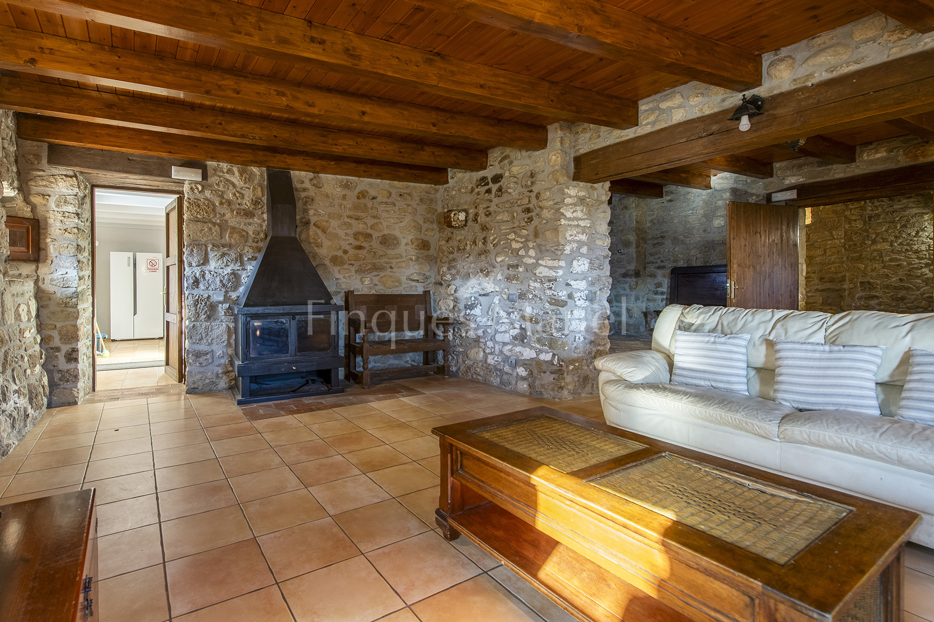 L’edificació principal, amb 696 m² construïts, ha estat restaurada amb gran sensibilitat, preservant l’essència rústica original i incorporant totes les comoditats actuals. Disposa de set amplis dormitoris, tots amb elements d’època, quatre banys i sistema de calefacció de gasoil, creant un ambient càlid i acollidor durant tot l’any.