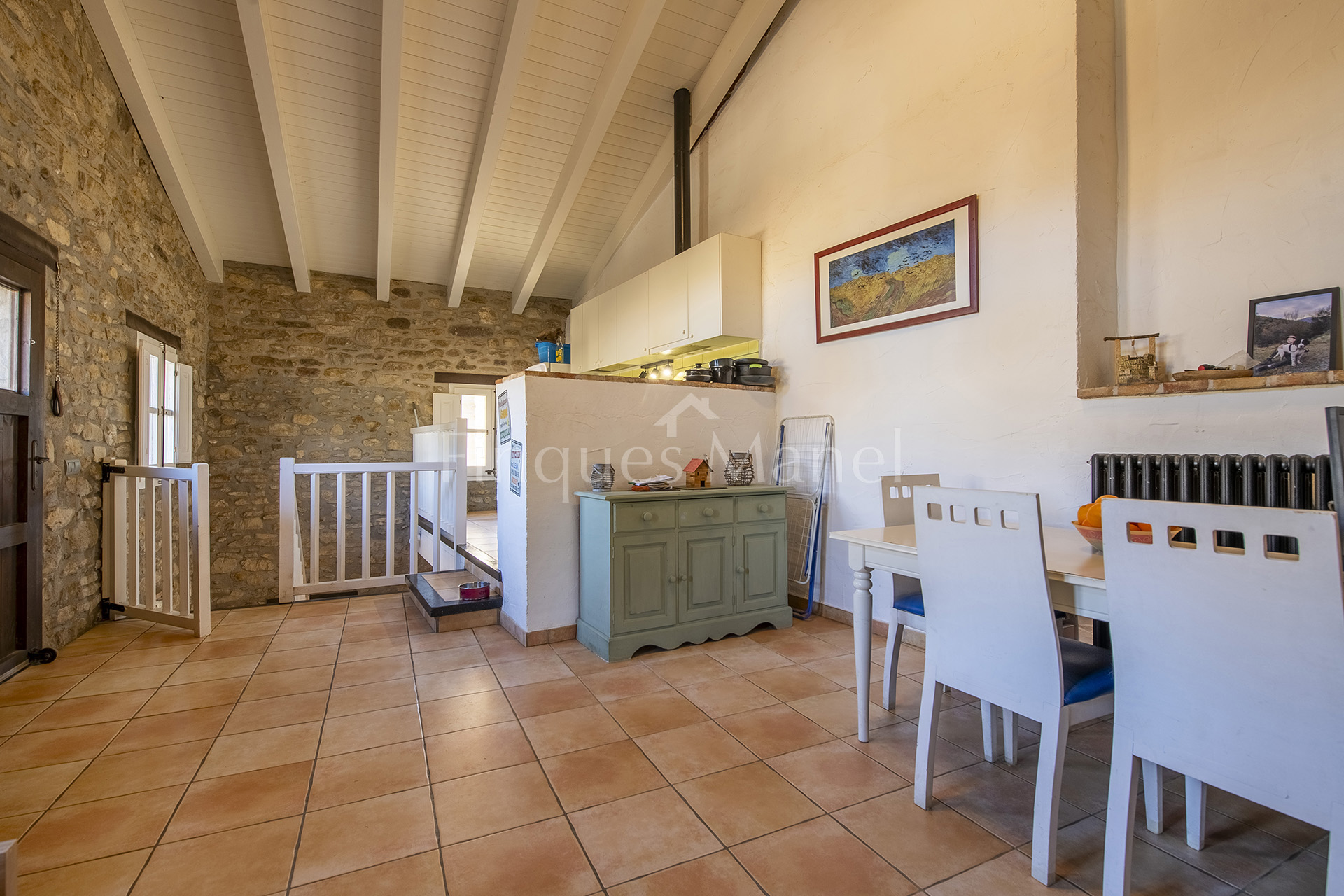 A l’interior de la masia s’hi troba també un apartament independent, ideal per a convidats, personal de servei o com a espai privat addicional.